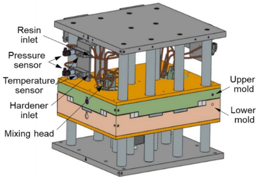 在此過程中,模具使用螺栓、肘節夾或壓力機保持閉合。通常,模具使用液體加熱系統加熱,RTM 期間使用的平均溫度為 104 華氏度(40 攝氏度)。然而,樹脂化學成分的變化可能需要不同的模具溫度,這也會影響反應時間和整體成型周期時間。