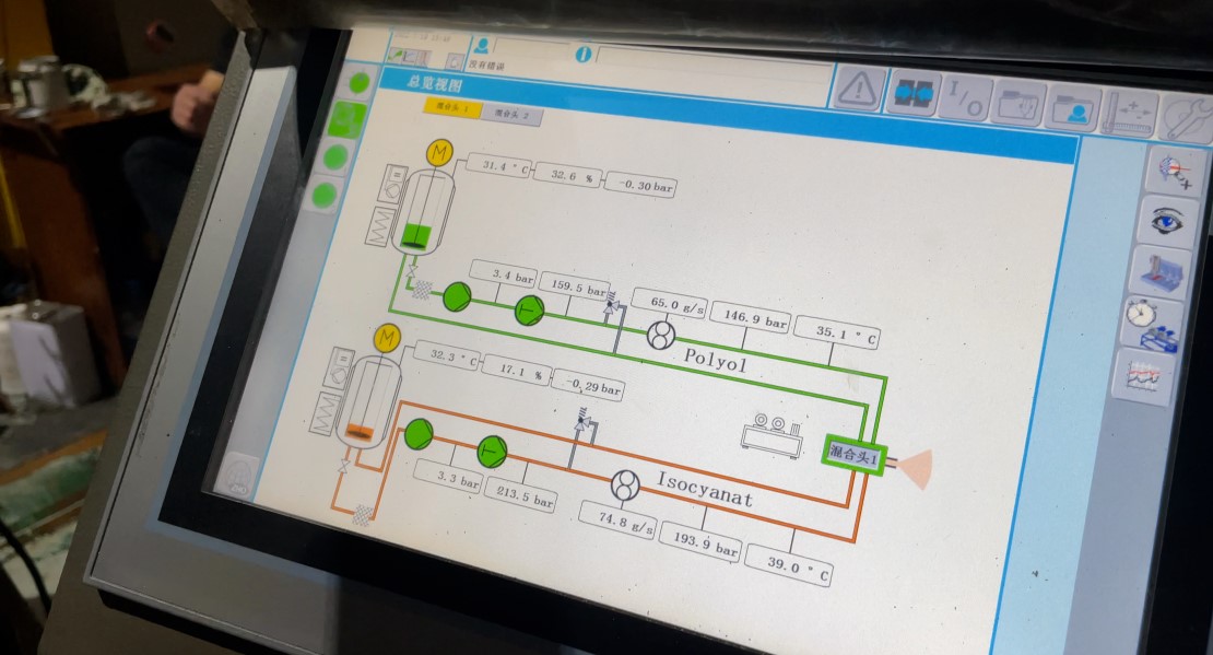 (3) 使用內脫模劑和自清潔系統。使用了注射混合頭的自清潔技術,并在原材料中添加了內脫模劑組分,有效地提高了設備的清潔效率。